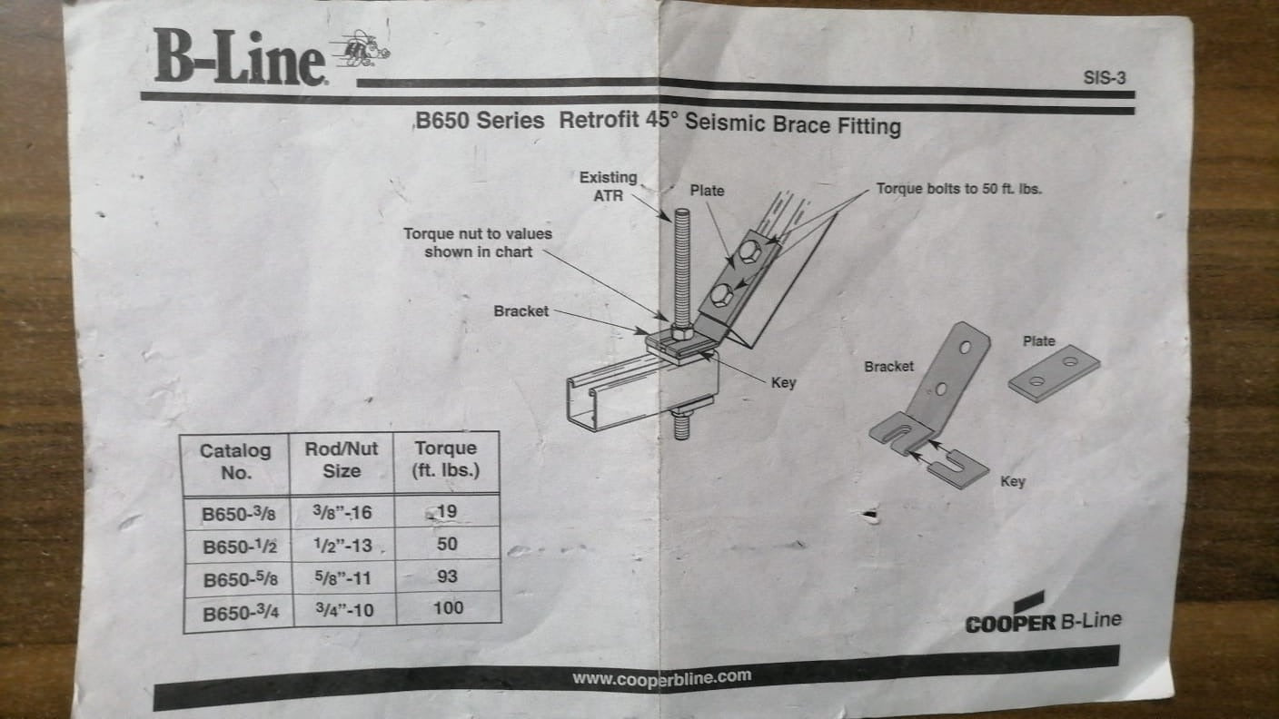 10 Adet B-Line B650-38 Seismic Retrofit Bracket