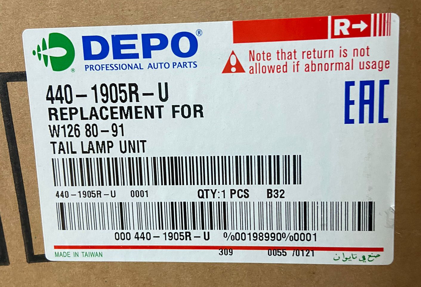 Depo 440-1905R-U Tail Lamp Unit Mercedes W126 80-91