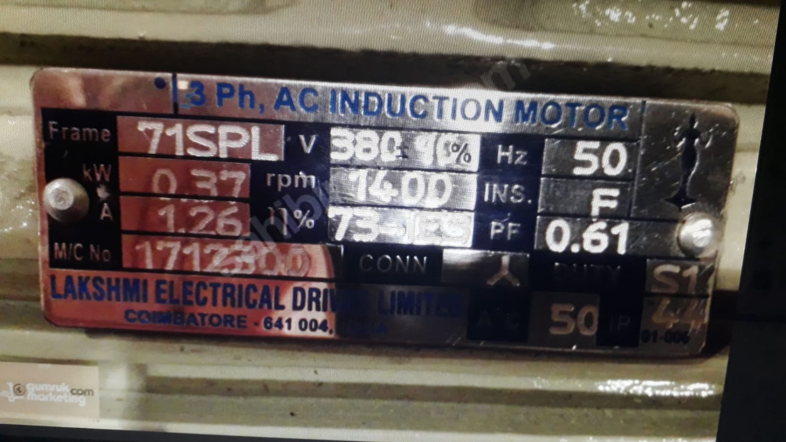 Lakshmi 3 Fazlı AC 71SPL İndüksiyon Motor – 380V, 0.37kW, 1400 RPM